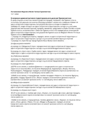 - Постановление Меджлиса Милли Генгеша Туркменистана 10 November 2022