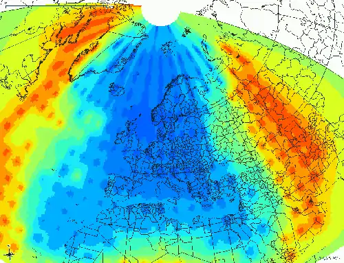 Ionospheric coverage area and interpolated delay values for 12 May 2014 extracted from MT18 and MT26: