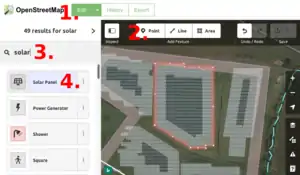 - Open Infrastructure Map is a map made from OSM data which shows solar power up well - you'll need to turn on the "solar" layer.