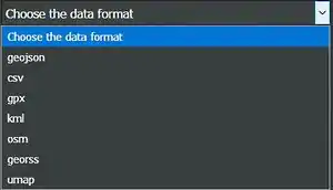 The format is derived from the extension of the file. If this is not possible a format can be set with drop-down list at 4. The list below shows details. A bold format can be exported by uMap: