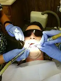 Місце, де працює професійний лікар-стоматолог ("dentist"), який спеціалізується на діагностиці, профілактиці та лікуванні захворювань і станів, пов'язаних з доглядом за порожниною рота.
