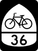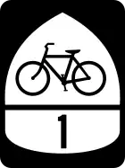 Since July 2013, OpenStreetMap contains all approved USBRs (or endeavors to do so as routes are newly approved by AASHTO). These are tagged with type=route, route=bicycle, network=ncn, ref=USBR # and cycle_network=US:US. In the Cycle Map layer (OpenCycleMap, or OCM), these display as solid red lines badged with red USBR numbers. Cycle Map also displays proposed USBRs (ongoing proposals distinctly moving towards AASHTO application as USBRs — or better, actual USBR applications before AASHTO on its next ballot) as dashed red lines badged with red USBR numbers. The Cycle Map and CyclOSM renderers display both approved and proposed routes, while the Waymarked Trails: Cycling (Lonvia) renderer displays only approved (not proposed) routes. One route relation representing both directions of a USBR is called a "bidirectional" route; most routes are bidirectional, tagged with forward and backward role tags where necessary to express "only-in-this-direction travel." Two route relations for one USBR (one for each direction) are called "unidirectional." Bidirectional USBRs which traverse a single US state are expressed with a single type=route relation. USBRs which traverse multiple US states (and those which are unidirectional) are expressed as a super-relation (here, a type=route relation containing only other type=route relations). If routes are bidirectional members of a super-relation (one route traversing multiple states), add name=# (Name of state) (where # is USBR number) to each bidirectional member relation, to better distinguish them. If routes are unidirectional and in multiple states, add name=# direction (Name of state) (where direction is [north, east, south, west]). Largely because of disparities in state funding levels, on-the-ground USBR signage improves patchily across the System; about 1/4 of the miles in the System are signed, with either a green or black shield (MUTCD M1-9, see below) plus sometimes a cardinal directional sign (MUTCD M3-1, M3-2, M3-3 or M3-4). Big thanks to Minh Nguyễn (talk, contribs) for long-time updating the green and black .svg graphics of the shields and tracking which states and routes use which shields.