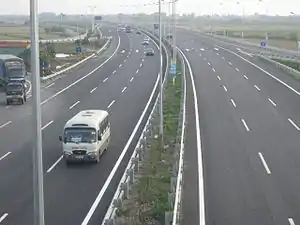 - Đường cao tốc, tức đường dành riêng cho xe cơ giới, có dải phân cách chia đường cho xe chạy hai chiều riêng biệt; không giao nhau cùng mức với một hoặc các đường khác; giới hạn cả tốc độ lớn nhất lẫn tốc độ nhỏ nhất.