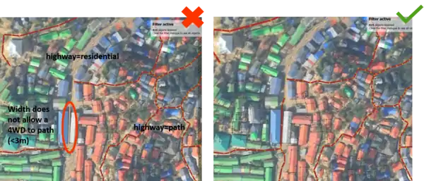 | #4891 | Bangladesh Refugee Crisis camp mapping - NW of megacamp 3 Update | Drone Imagery from IOM 07/06/2018: https://tiles.openaerialmap.org/5b1f8d422b6a08001185f7ce/0/5b1f8d422b6a08001185f7cf/{z}/{x}/{y}.png | Buildings, roads | 100% | 100% | |
