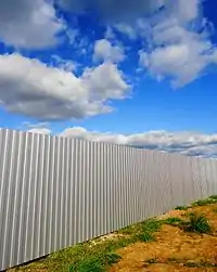 | corrugated_metal | Light steel sheets with linear corrugated pattern (wavy, trapezoidal, etc). Also known in Australia as Colorbond fencing | ![]() |