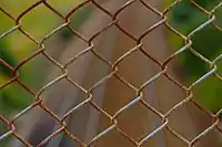 | chain_link | A chain-link fence (also referred to as wire netting, wire-mesh fence, chain-wire fence, cyclone fence, hurricane fence or diamond-mesh fence) is a type of woven fence usually made from galvanized or polyethylene-coated steel wire. | ![]() |