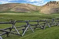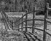 | split_rail | Split-rail or log fence. A type of fence constructed out of timber logs, usually split lengthwise into rails. | ![]() |