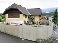 | panel | A fence made of pre-constructed panels which slot into grooves in concrete fence posts | ![]()