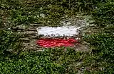 However, it has been observed on the field that other colours are still in use (e.g., orange, purple). Furthermore, there are also old markers for local walking routes with different symbols: cross, "X", right-angled triangle, diamonds, etc.