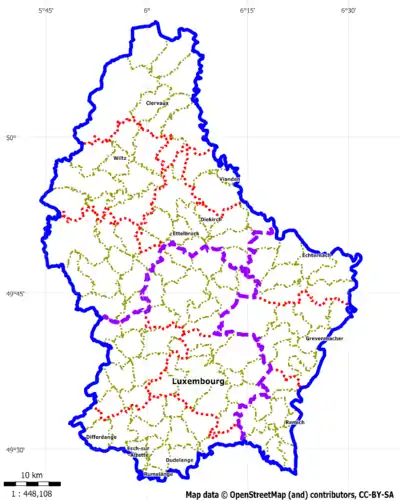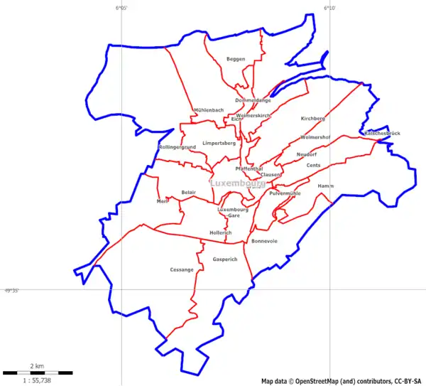| 9 | Quarter border | left:arrondissement=* and right:arrondissement=* | Quarter names (only in Luxembourg City and Esch-sur-Alzette) |
