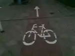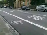 | Marked cycle lane on both sides of a bidirectional road or on a footpath or a bidirectional cycleway on one side ![]() ![]() | ![]() ![]() ![]() ![]() | highway=* cycleway=lane | ![]() | ![]() |