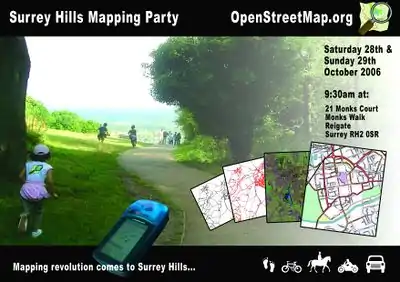 The Surrey Hills is a designated area of outstanding natural beauty. It is the target for this mapping party and is located to the south of London between the M25 motorway and Gatwick airport.