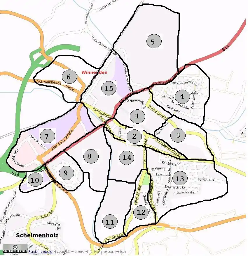 map of the areas of Winnenden