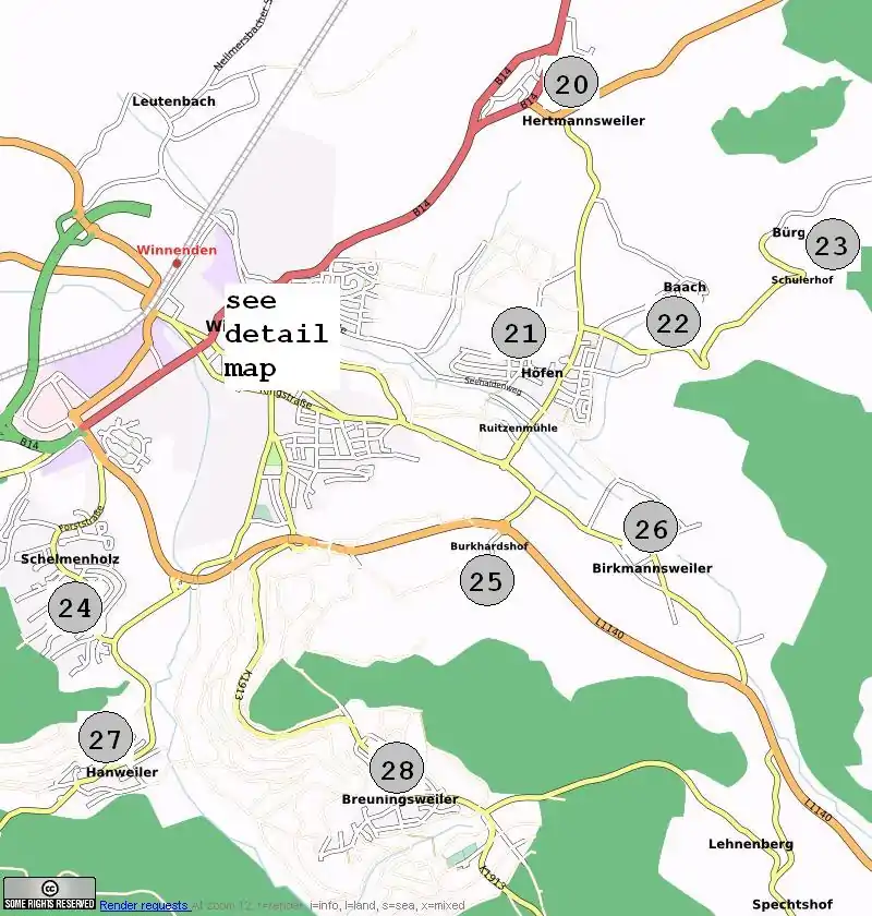 map of the suburbs of Winnenden