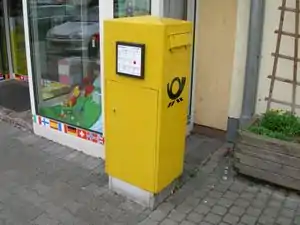 A post box (AE collection box, mailbox or drop box) is a facility to send out stamped postal items (letters & small goods).